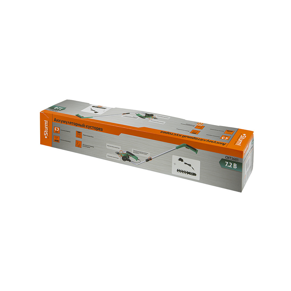 - Аккумуляторный кусторез Штурм CHT3601 оснащен двухступенчатой системой безопасности.
