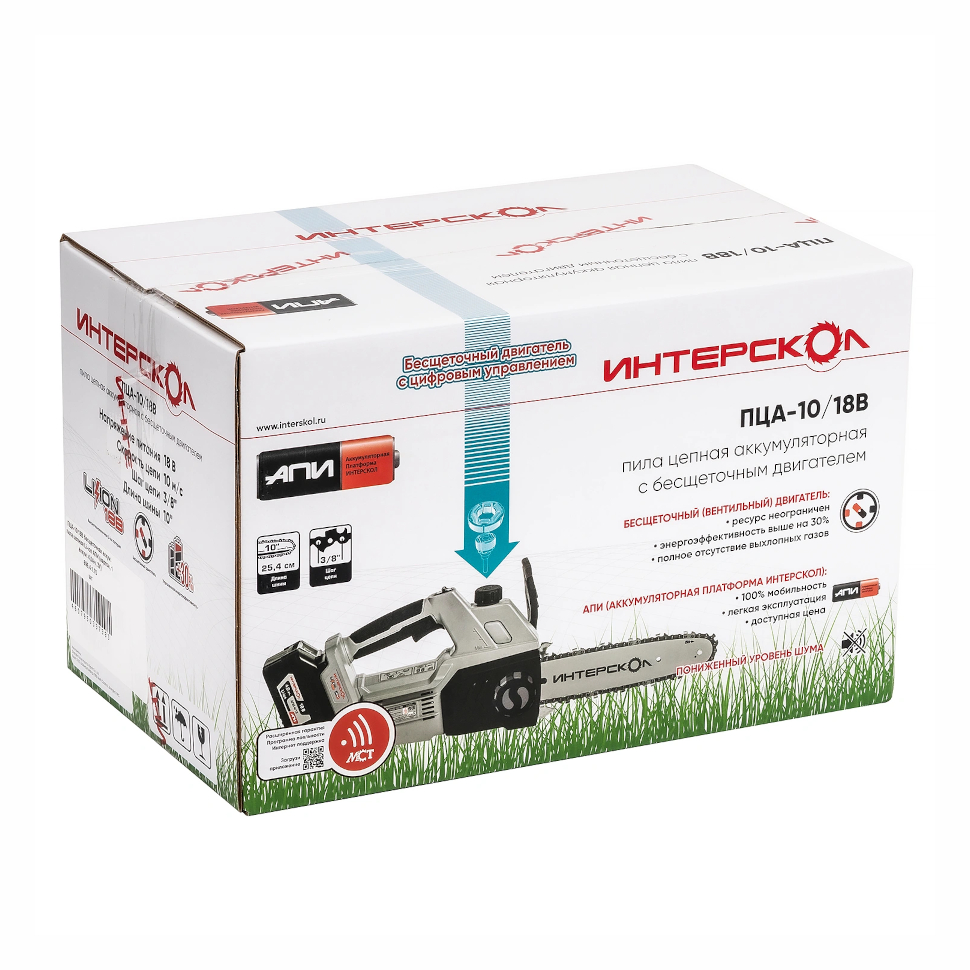 Мощная и компактная аккумуляторная цепная пила фермерского класса Интерскол ПЦА-10/18В (артикул 696.4.1.70) отличается энергоэффективностью бесщеточного двигателя - вентильный привод с цифровым управлением обеспечивает высокий КПД, экономию заряда аккумулятора и увеличение его ресурса.