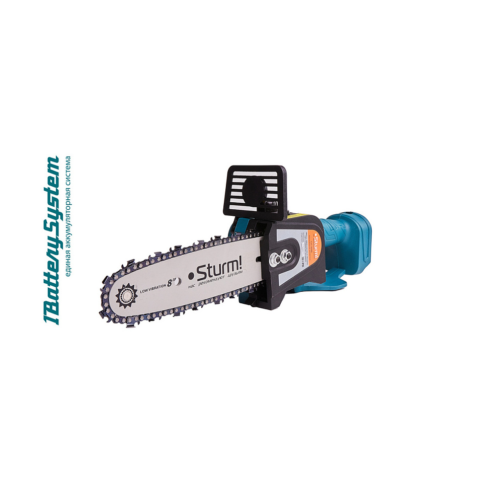 Аккумуляторная цепная пила Штурм обладает следующей особенностью — интеграция в экосистему 1BatterySystem18V. Эта универсальная аккумуляторная система совместима со всей линейкой аккумуляторного инструмента Sturm, что обеспечивает невероятную гибкость и экономию.