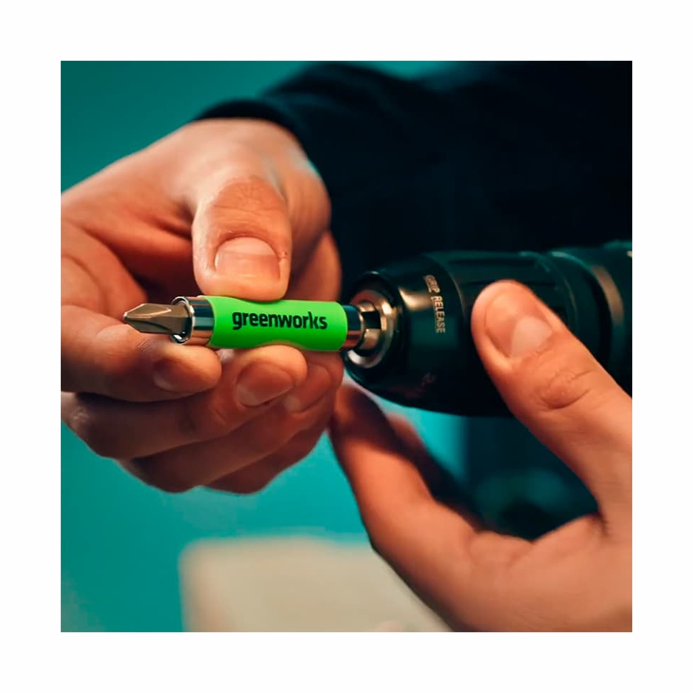 Комплект оснастки Гринворкс 2944207 оптимален для профессиональных монтажников, сервисных специалистов и автослесарей.