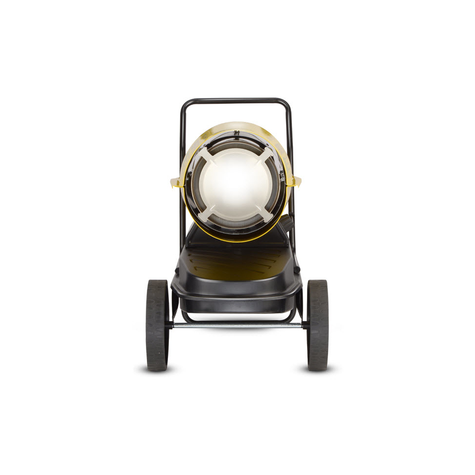 Воздушный поток затягивается вентилятором через защитную решетку, после чего попадает в камеру сгорания. Одновременно мощный насос подает дизельное топливо из бака к форсунке, где оно распыляется и смешивается с воздухом. Трансформаторная система розжига с электродами на 12 кВ мгновенно поджигает топливно-воздушную смесь. Полученное тепло вместе с потоком воздуха направляется в обогреваемую зону, а теплоотражающий экран обеспечивает безопасность и равномерное распределение тепла.