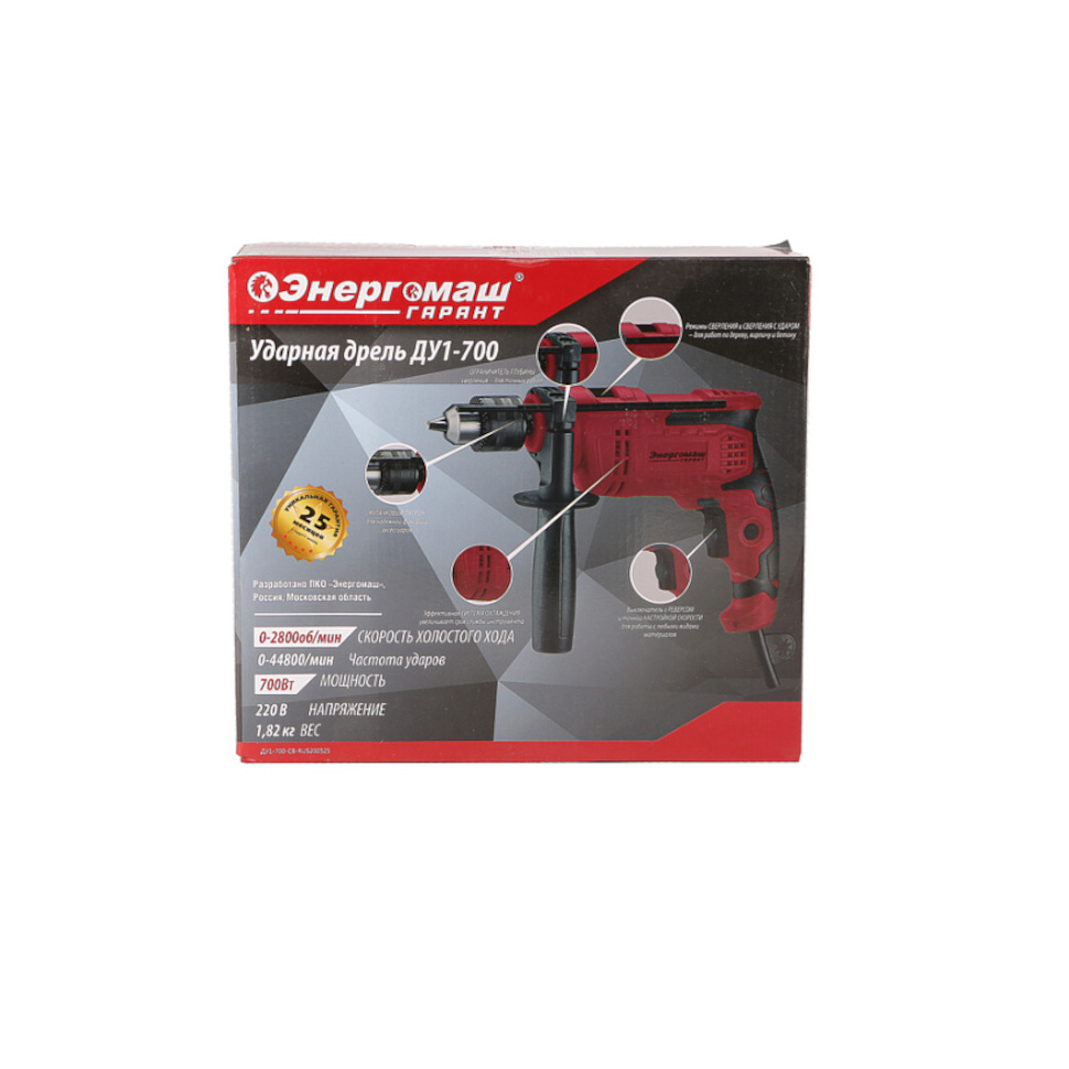 Преимущества Энергомаш Гарант ДУ1-700:Дрель Энергомаш Гарант ДУ1-700 - это не просто инструмент, это гарантия производительности, продуманная до мелочей конструкция и уверенность в каждом отверстии.