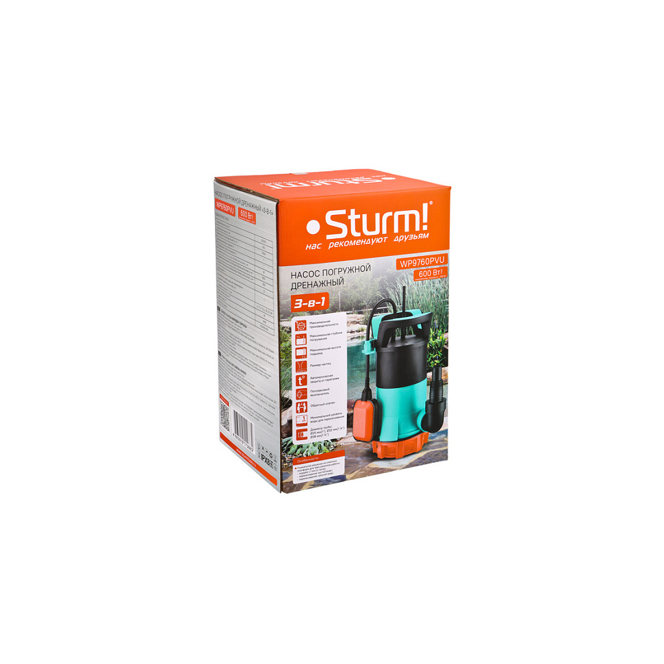 Характеристики Насос погружной дренажный Sturm WP9760PVU 3 в 1
