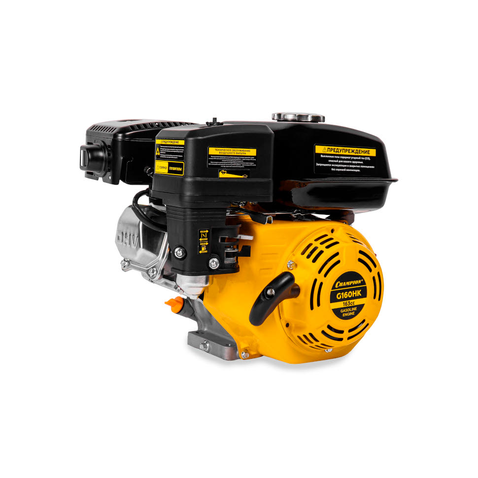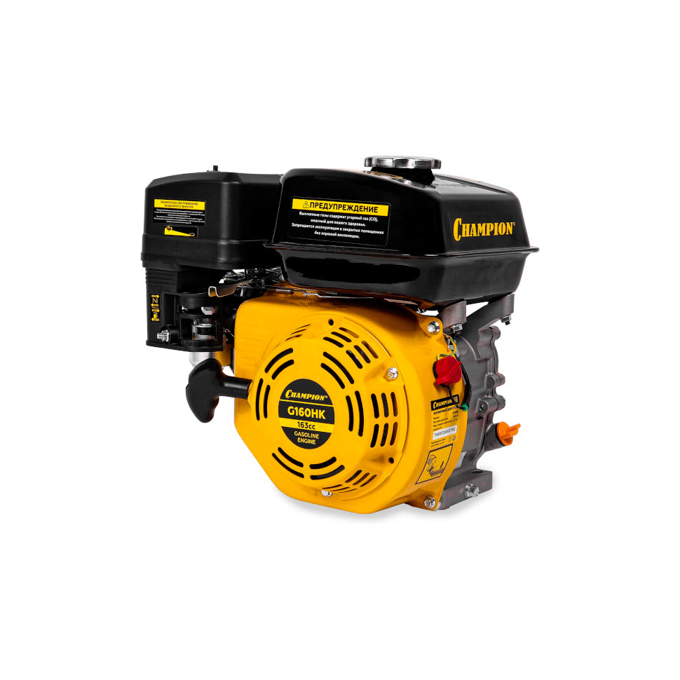 Четырехтактный двигатель Чемпион G160HK с верхним расположением клапанов (OHV) развивает мощность 5.5 л.с. и демонстрирует высокую надежность благодаря американской технологии и высокому качеству материалов.