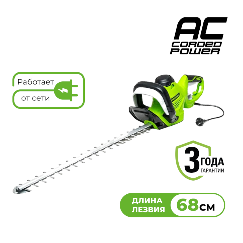 Электрический кусторез Гринворкс Deluxe 700 Вт (артикул 2201407) - мощный и маневренный инструмент для идеальной стрижки кустов и живой изгороди.