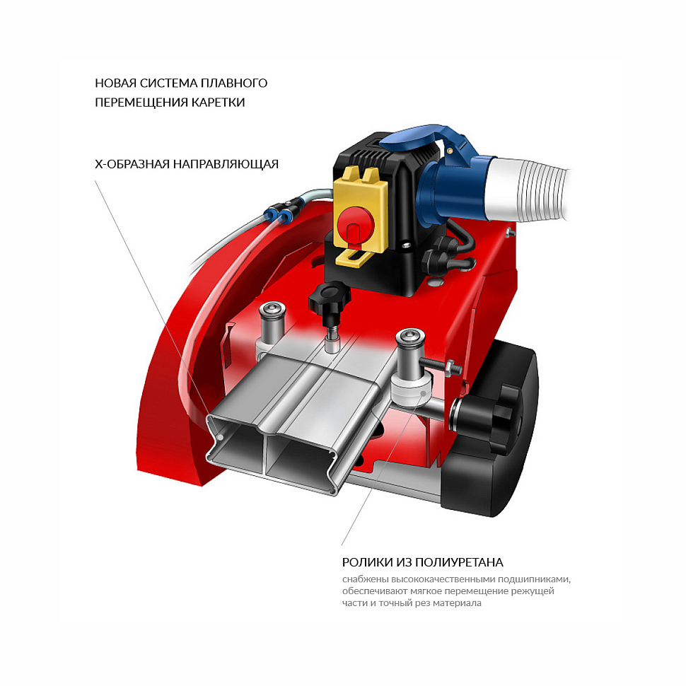 3. Плавность и удобство работы - каретка с режущей головкой перемещается на полиуретановых роликах с подшипниками, обеспечивая плавный, легкий ход и максимальную точность при резке.