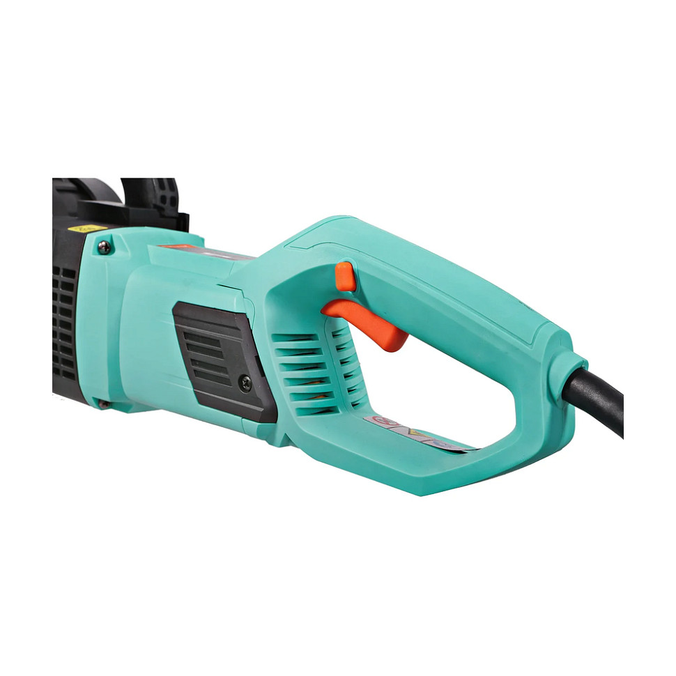 6. Пила оснащена мощным электродвигателем на 1500 Вт, который уверенно справляется не только с ветками, но и с древесиной среднего диаметра.