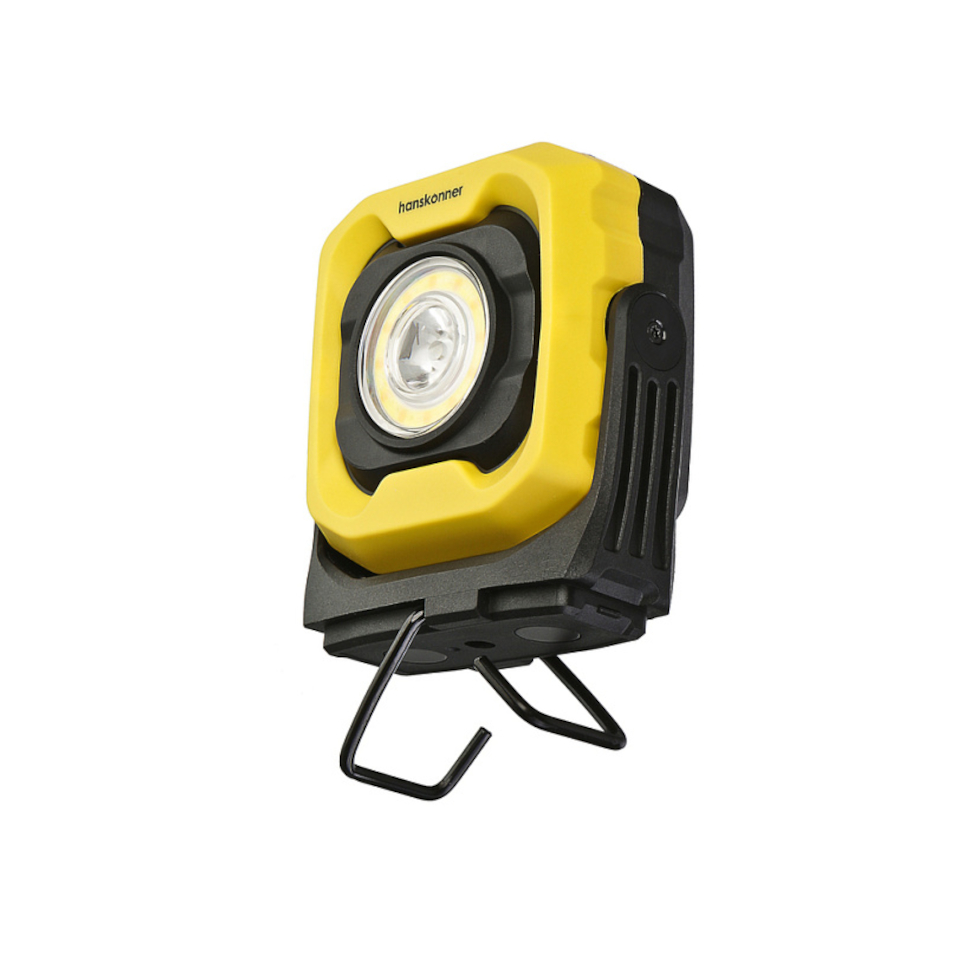Аккумуляторный прожектор Хансконнер 1200 лм (HK4052-03-01) демонстрирует универсальность благодаря системе многопозиционного крепления и регулируемой оптике.