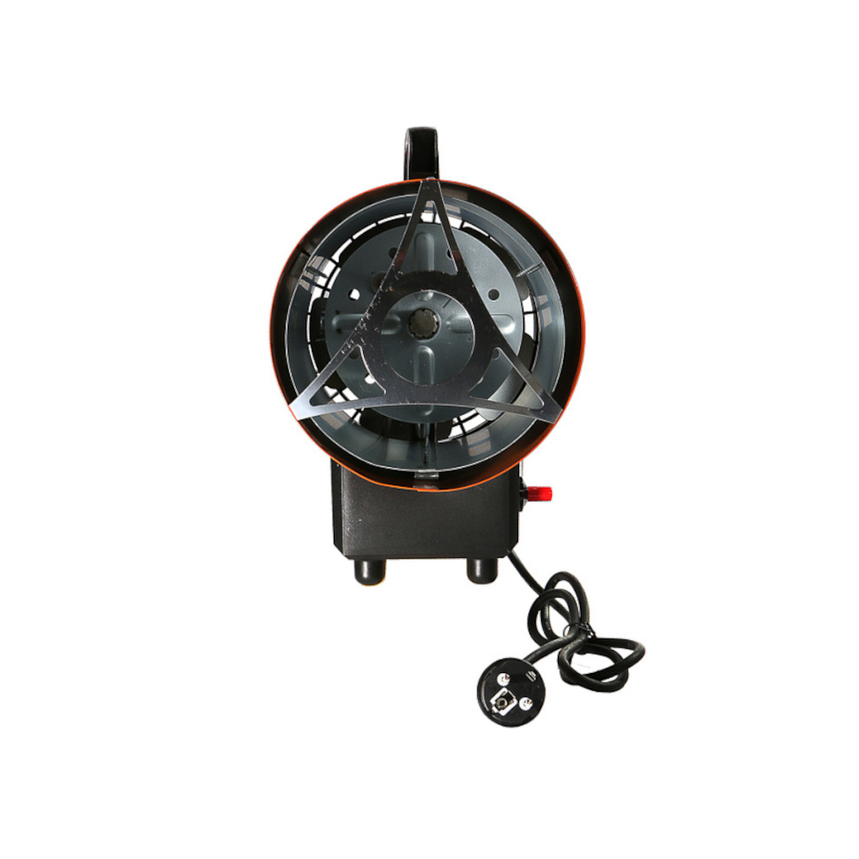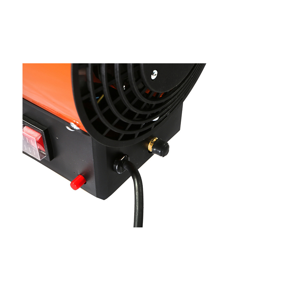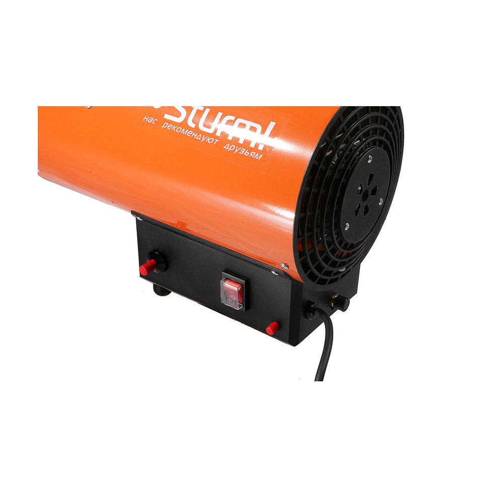 2. Безопасность в использовании - конструкция тепловой пушки продумана для обеспечения максимальной безопасности в использовании. Прочный металлический корпус защищает внутренние компоненты от повреждений, а широкая опорная площадка надежно предотвращает риск случайного опрокидывания.