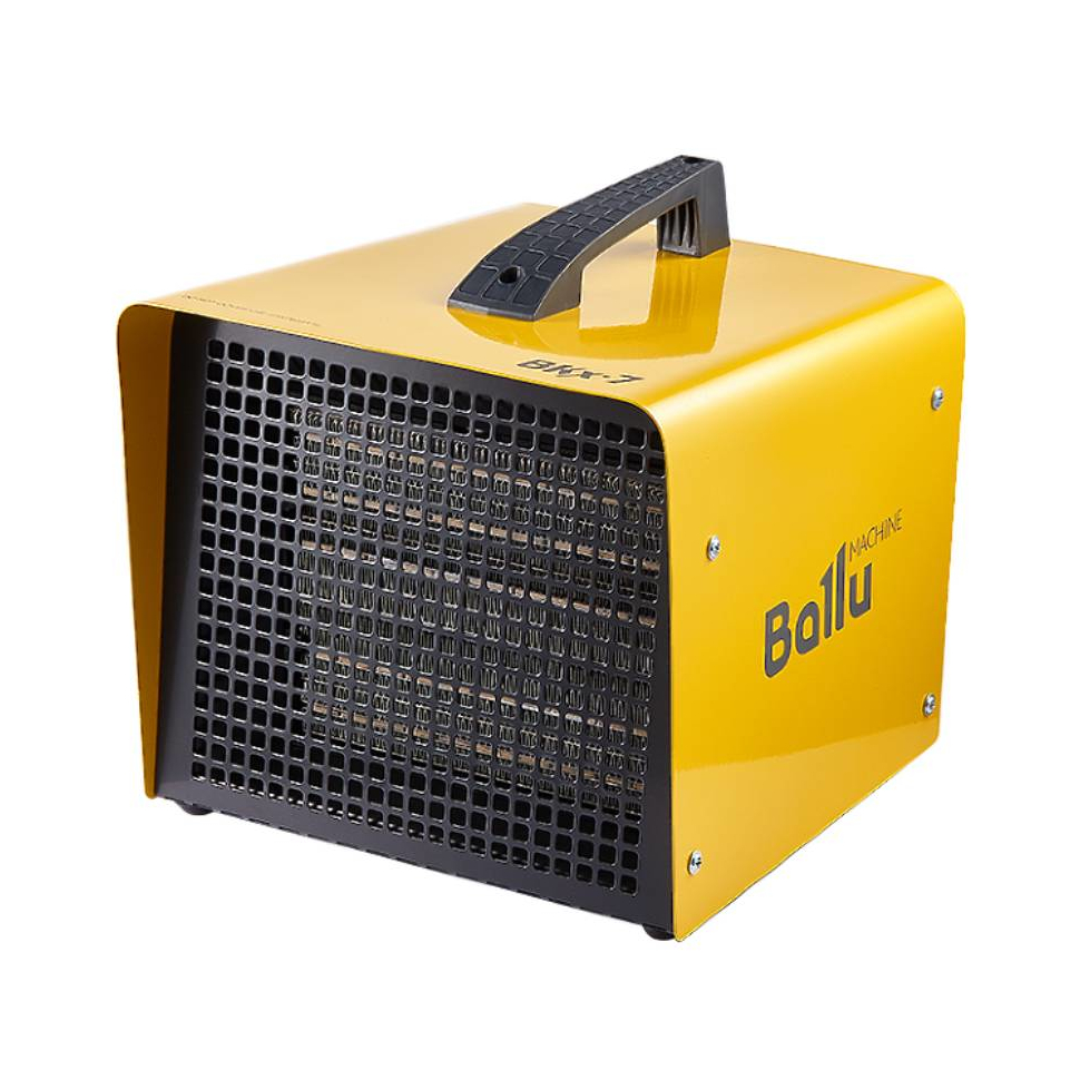 Электрическая тепловая пушка Баллу BKX-7 размещена в ударопрочном металлическом корпусе с антикоррозийным покрытием и укомплектована надежным металлокерамическим нагревательным элементом класса «А».