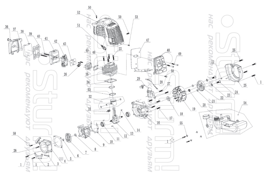 Объем двигателя 52 куб.см
