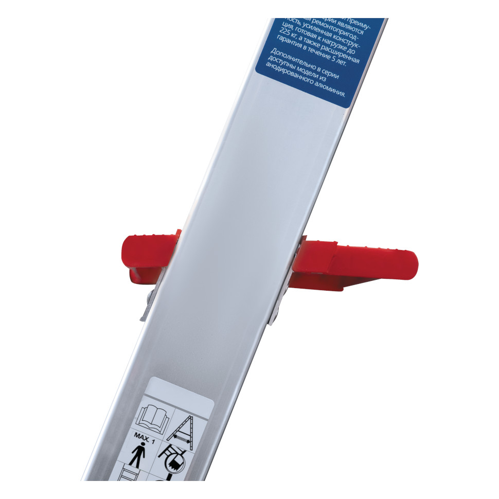 Стремянка Новая высота имеет стойки и ступени, которые изготовлены из экструдированного алюминиевого профиля.