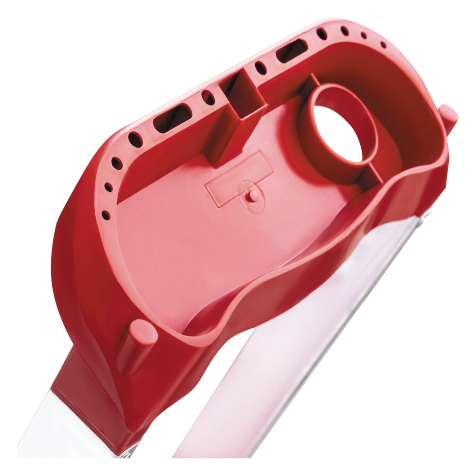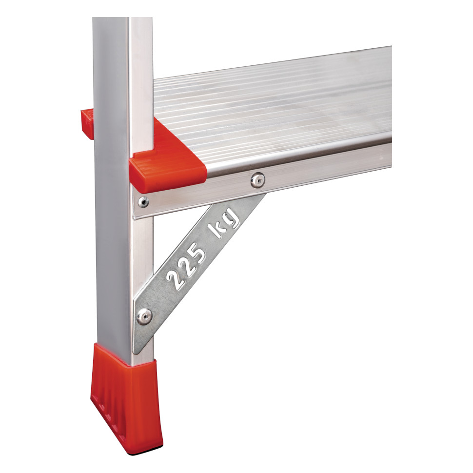 Башмаки, расположенные на ножках секций выполнены из прочного 2х-компонентного пластика, который исключает как возможность скольжения стремянки, так и возможность повреждения ей поверхности, на которой она стоит.