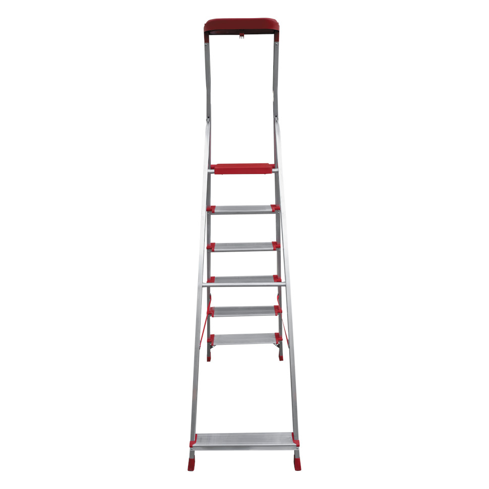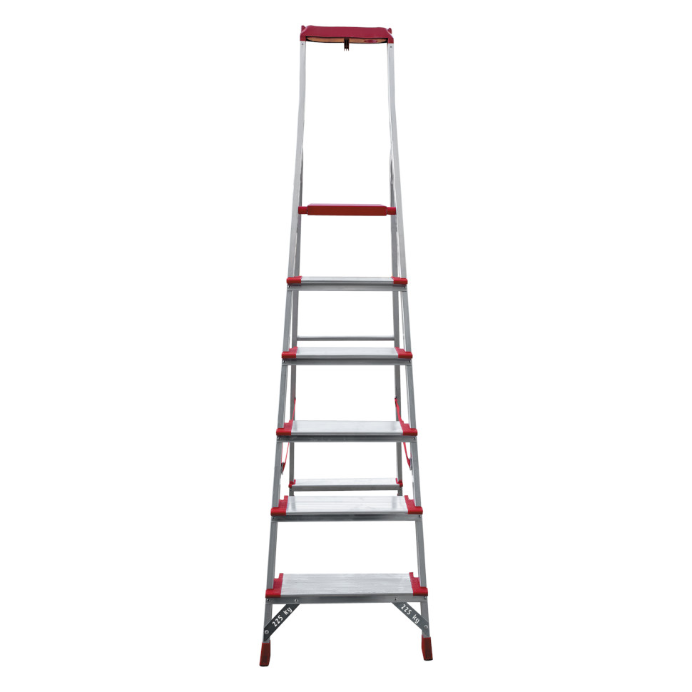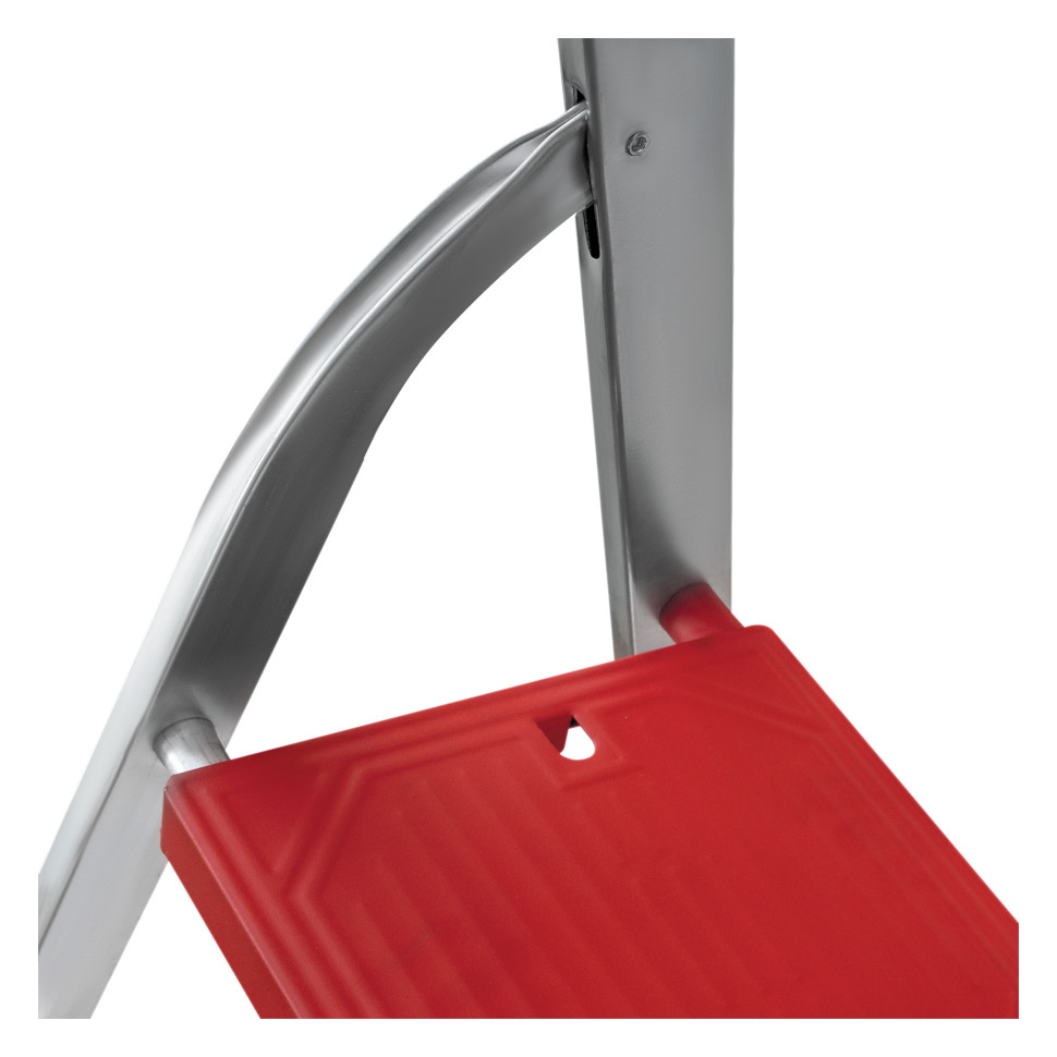 Устойчивость стремянки повышена, посредством дополнительной опорной ступени, расположенной на заднем каркасе.