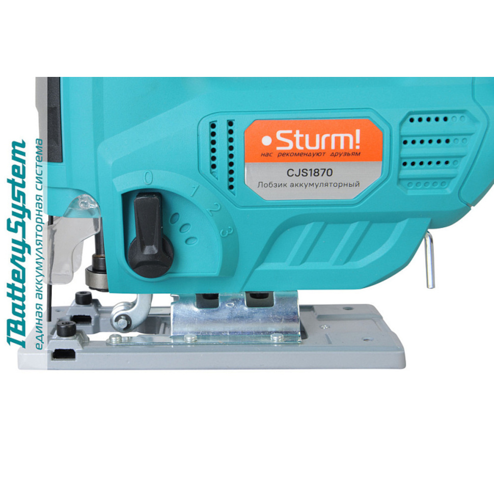 1. Мощная аккумуляторная платформа - работа в системе 1BatterySystem 18В обеспечивает длительное время работы и совместимость с широким парком аккумуляторного инструмента Sturm!. Для вашей экономии лобзик поставляется без аккумулятора и зарядного устройства - вы используете уже имеющиеся или выбираете нужную комплектацию.