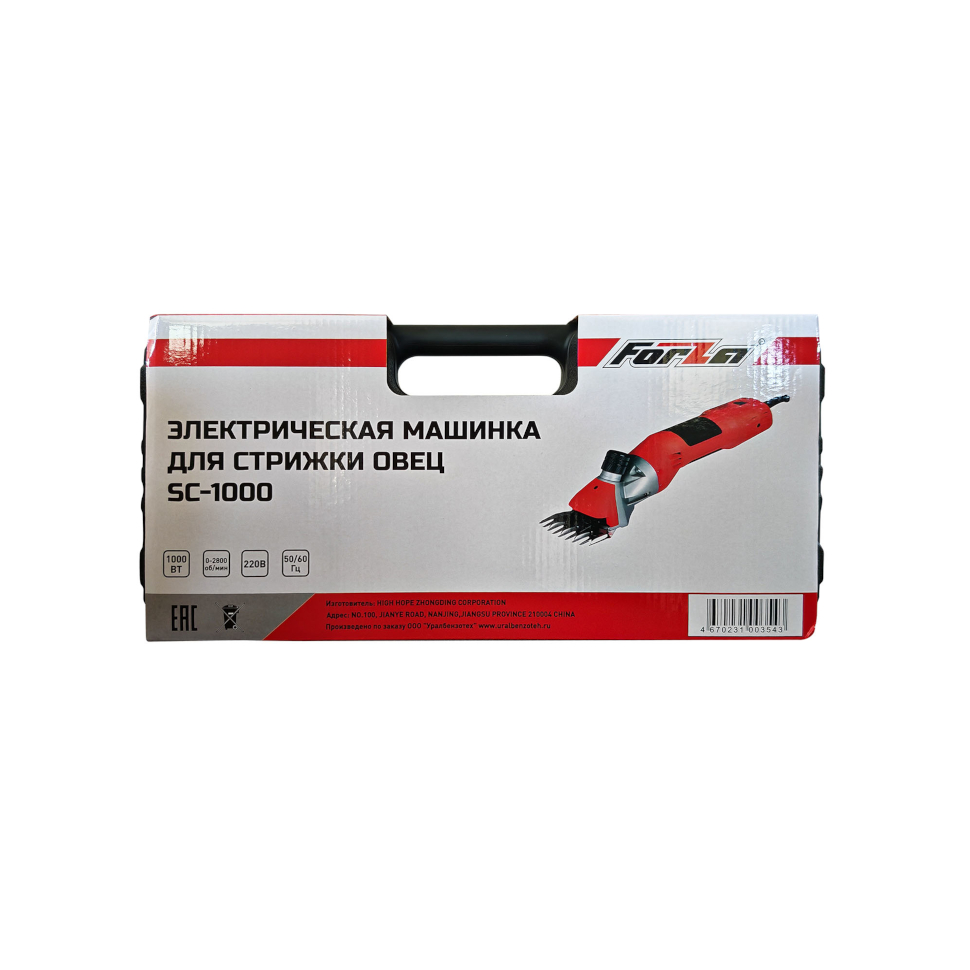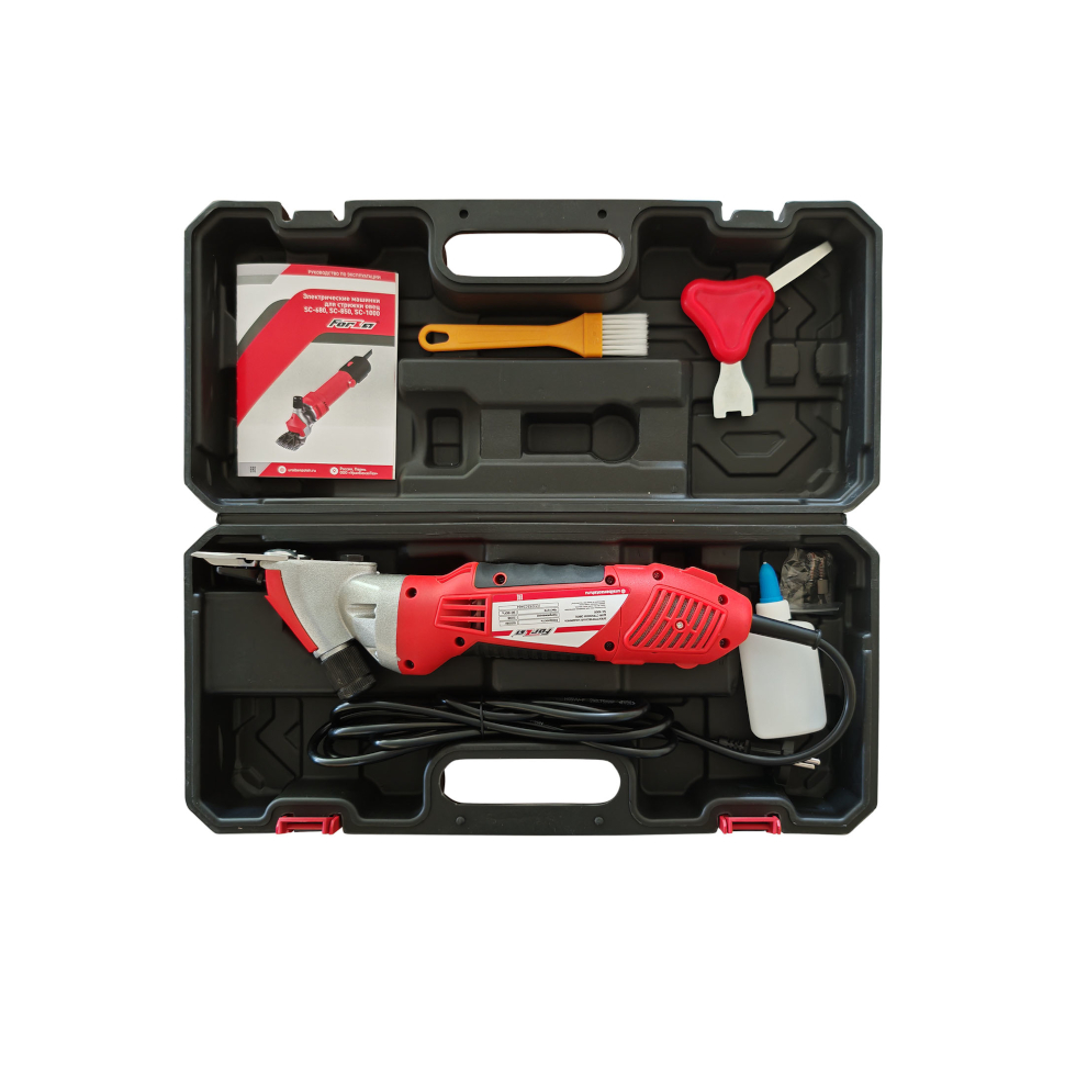 Машинка для стрижки овец электрическая Forza SC-1000 (FZ11.06.01.005). Угольная щётка - 1 пара. Смазочное масло. Инструкция по эксплуатации. Пластиковый кейс. |