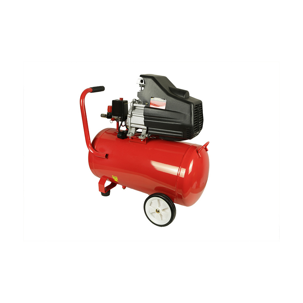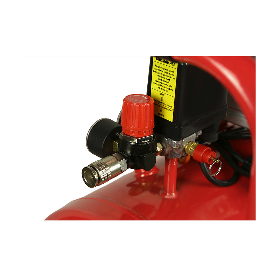 Конструкция с защитным кожухом обеспечивает эффективное охлаждение двигателя, а дренажный клапан ресивера позволяет своевременно удалять накопившийся конденсат.