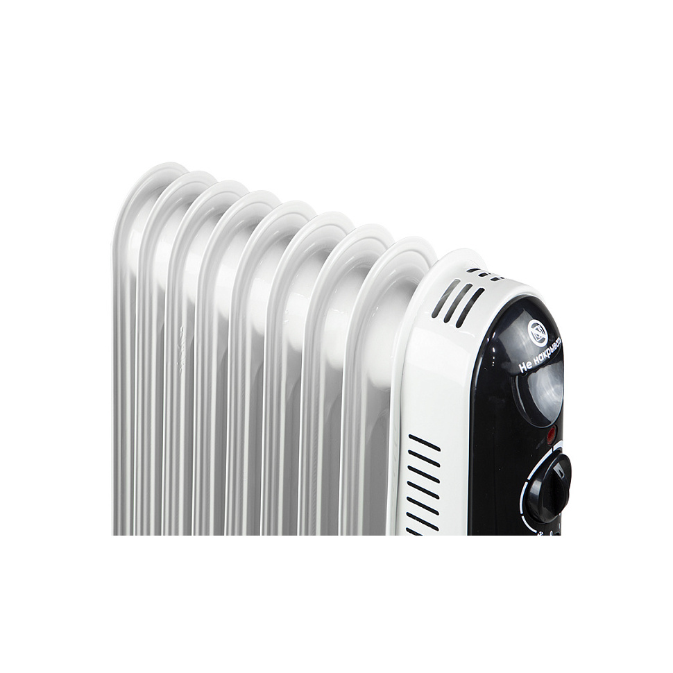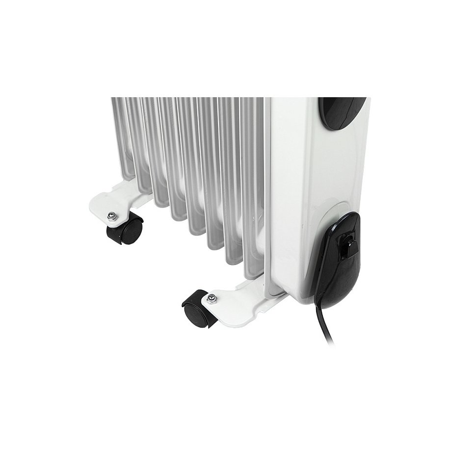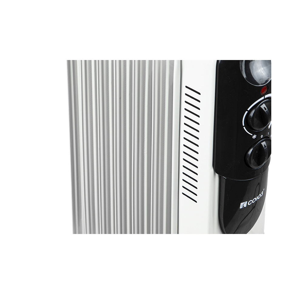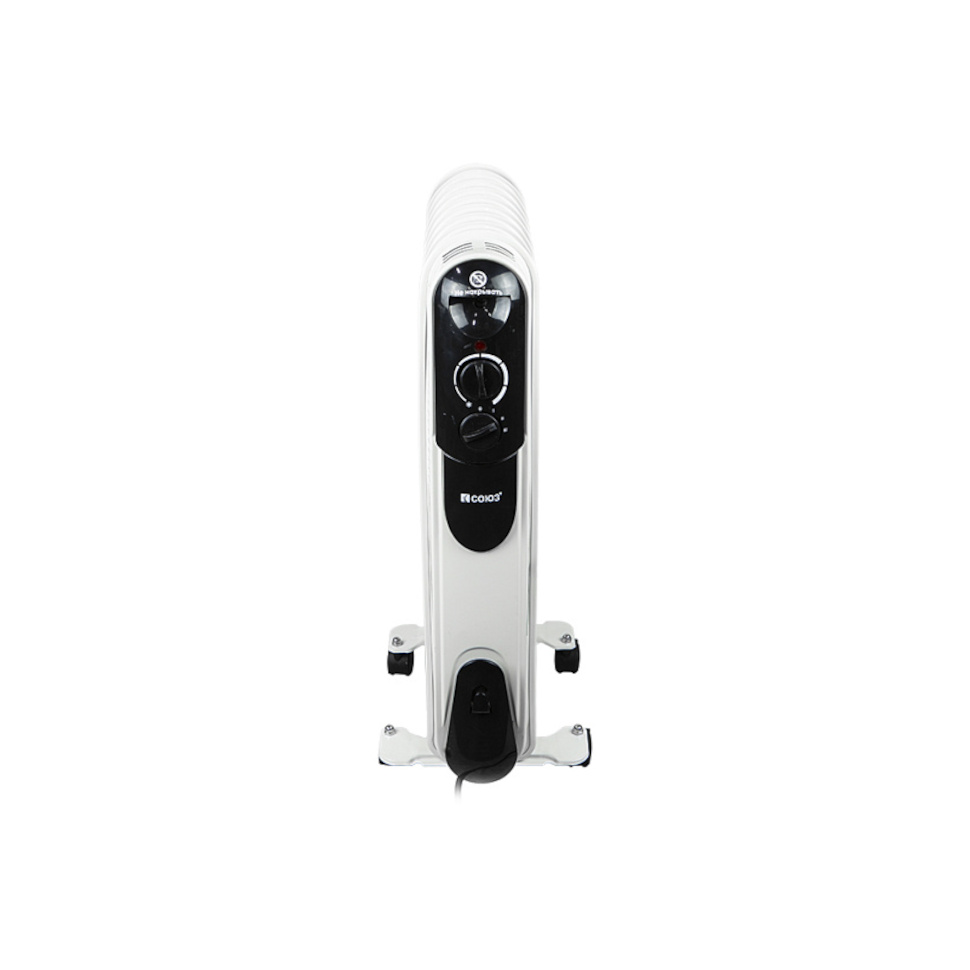 Масляный радиатор Союз МРС-2009 имеет интуитивно понятное управление: на передней панели расположены механические регуляторы. Один из них позволяет выбрать один из трех режимов нагрева (эконом, умеренный, максимальный), а второй отвечает за настройку термостата для автоматического поддержания заданной температуры.