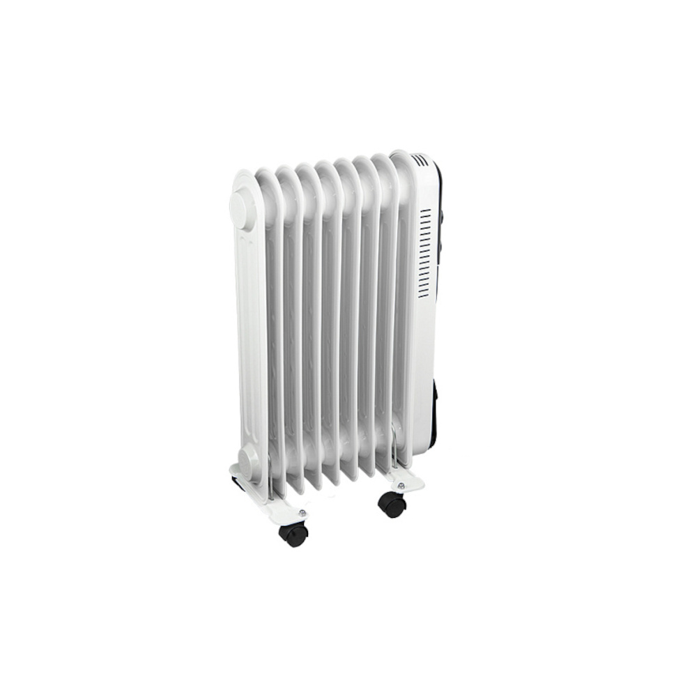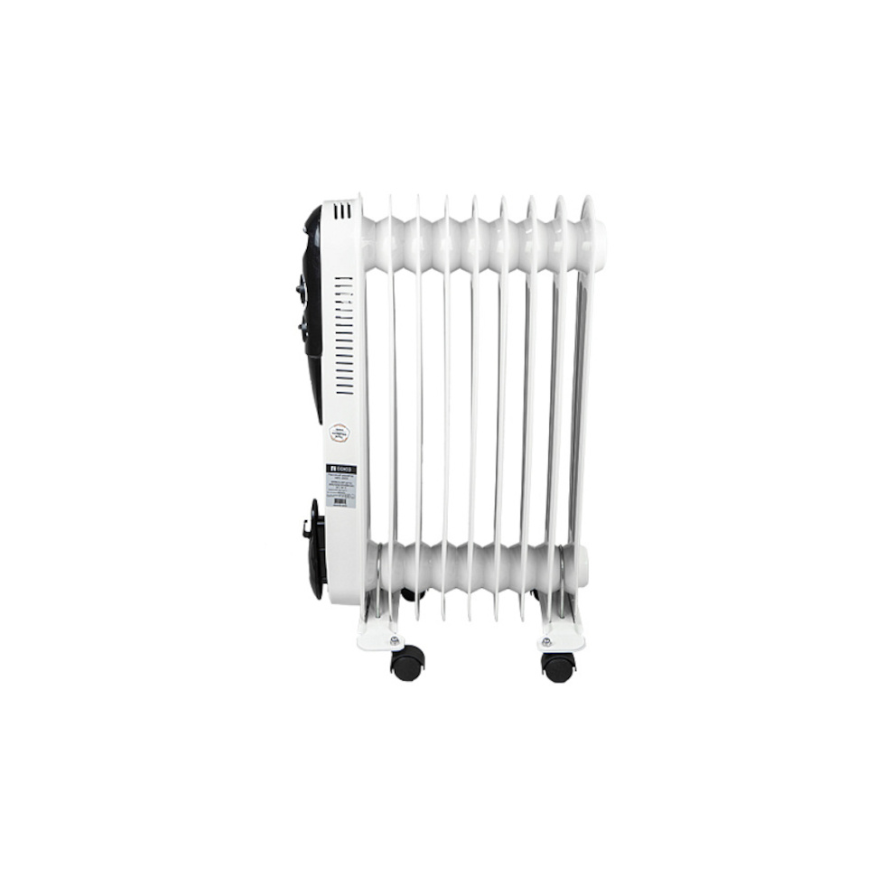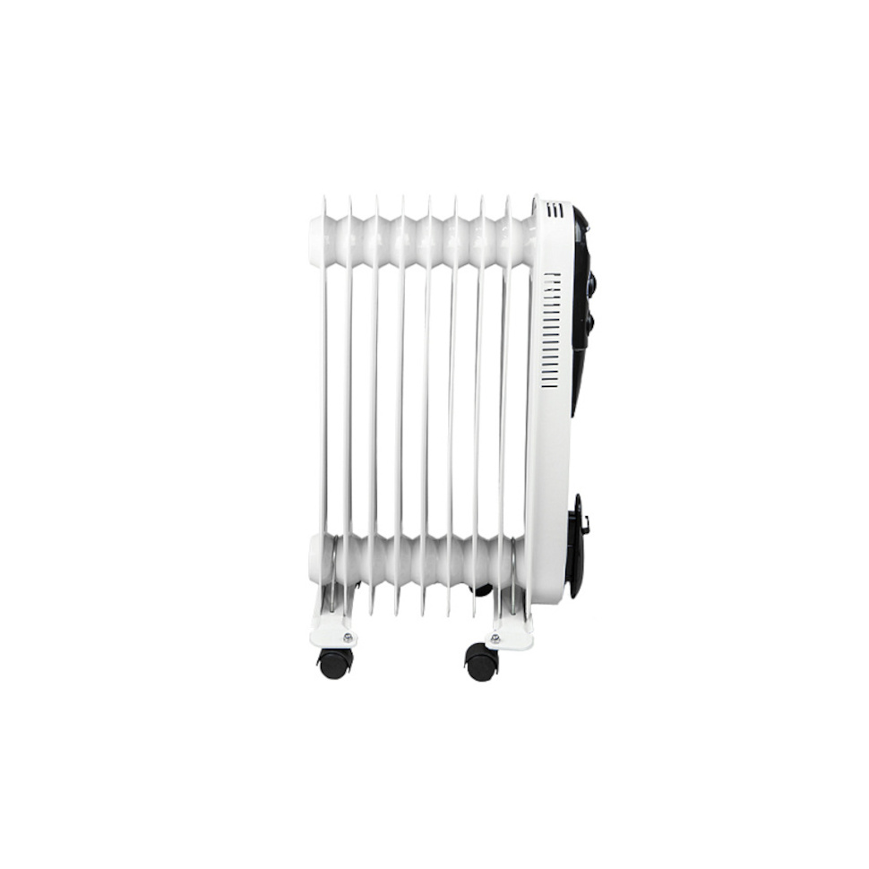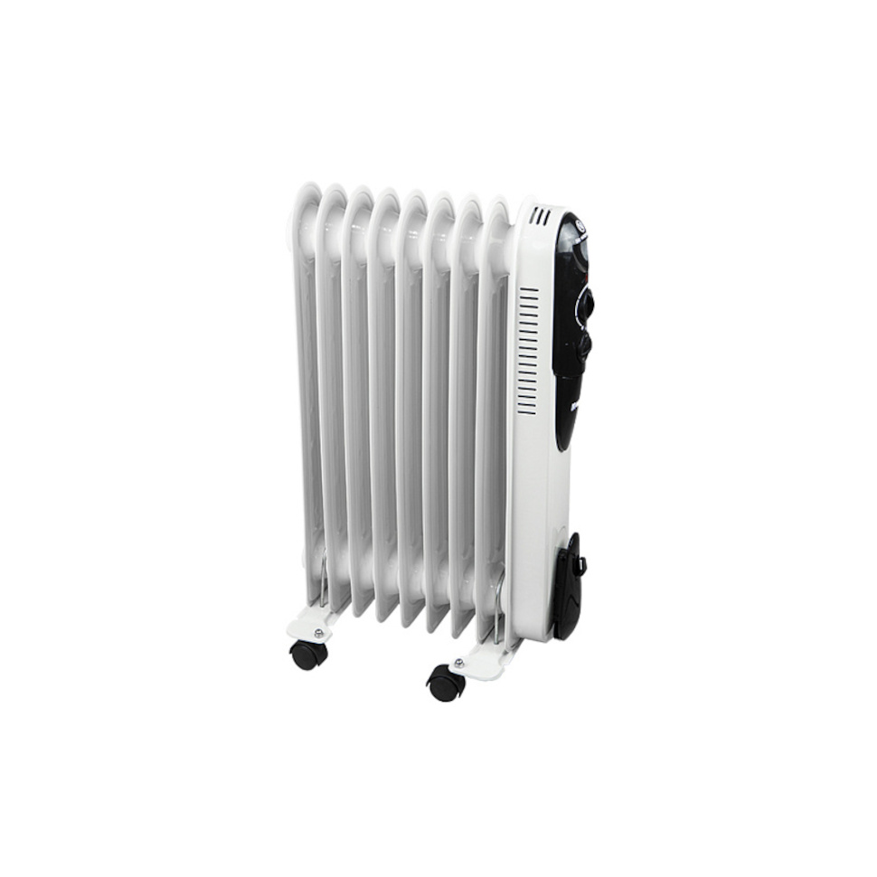 Масляный радиатор Союз МРС-2009 имеет интуитивно понятное управление: на передней панели расположены механические регуляторы. Один из них позволяет выбрать один из трех режимов нагрева (эконом, умеренный, максимальный), а второй отвечает за настройку термостата для автоматического поддержания заданной температуры.
