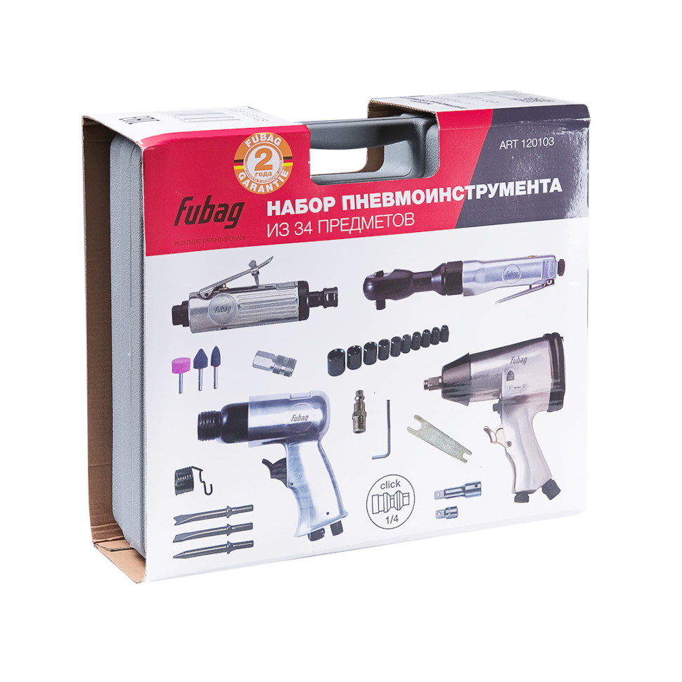 Характеристики Набор пневмоинструмента Fubag NP-103 34 предмета, кейс (120103)