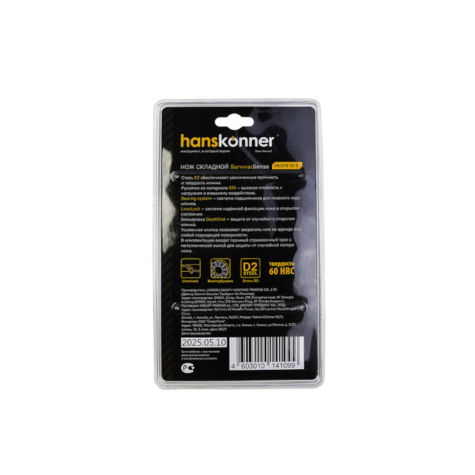 Характеристики Нож складной 85мм, лезвие D2, рукоятка G10 HANSKONNER (HK1076-10-3)