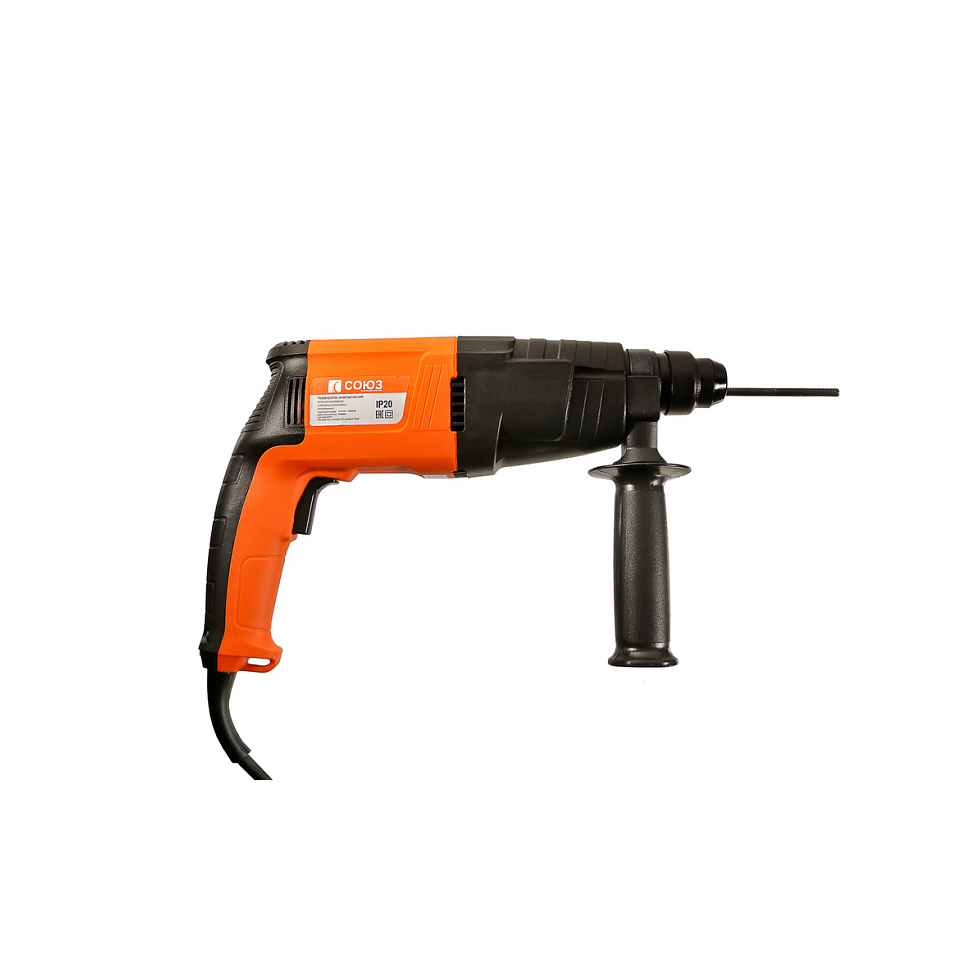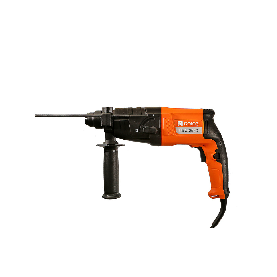 Перфоратор Союз ПЕС-2550 оснащается двухрежимной рабочей системой, которая предусматривает сверление и ударное сверление, обеспечивая универсальность применения для различных материалов.
