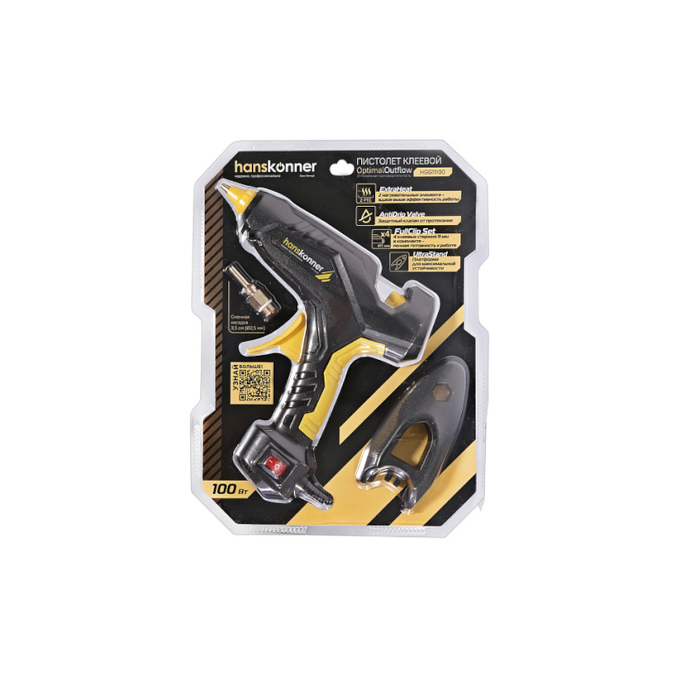 Клеевой пистолет Хансконнер HGG11100 имеет продуманную эргономику - легкий корпус с удобной формой рукояти обеспечивает комфортную работу без усталости даже в течение продолжительного времени. Инструмент одинаково хорошо подходит как для профессионального применения, так и для домашних проектов.