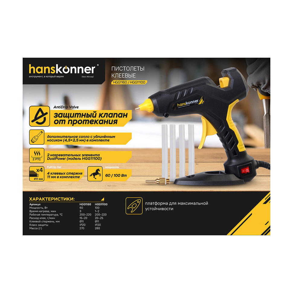 Характеристики Пистолет клеевой Hanskonner HGG1160