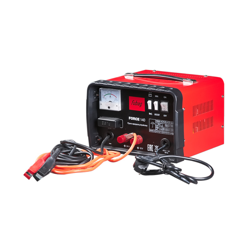 Пуско-зарядное устройство Fubag Force 140 (68833). Встроенный кабель с зажимом (-). Съемный кабель с зажимом (+). 2 предохранителя 60 А. Инструкция по эксплуатации. Коробка. |