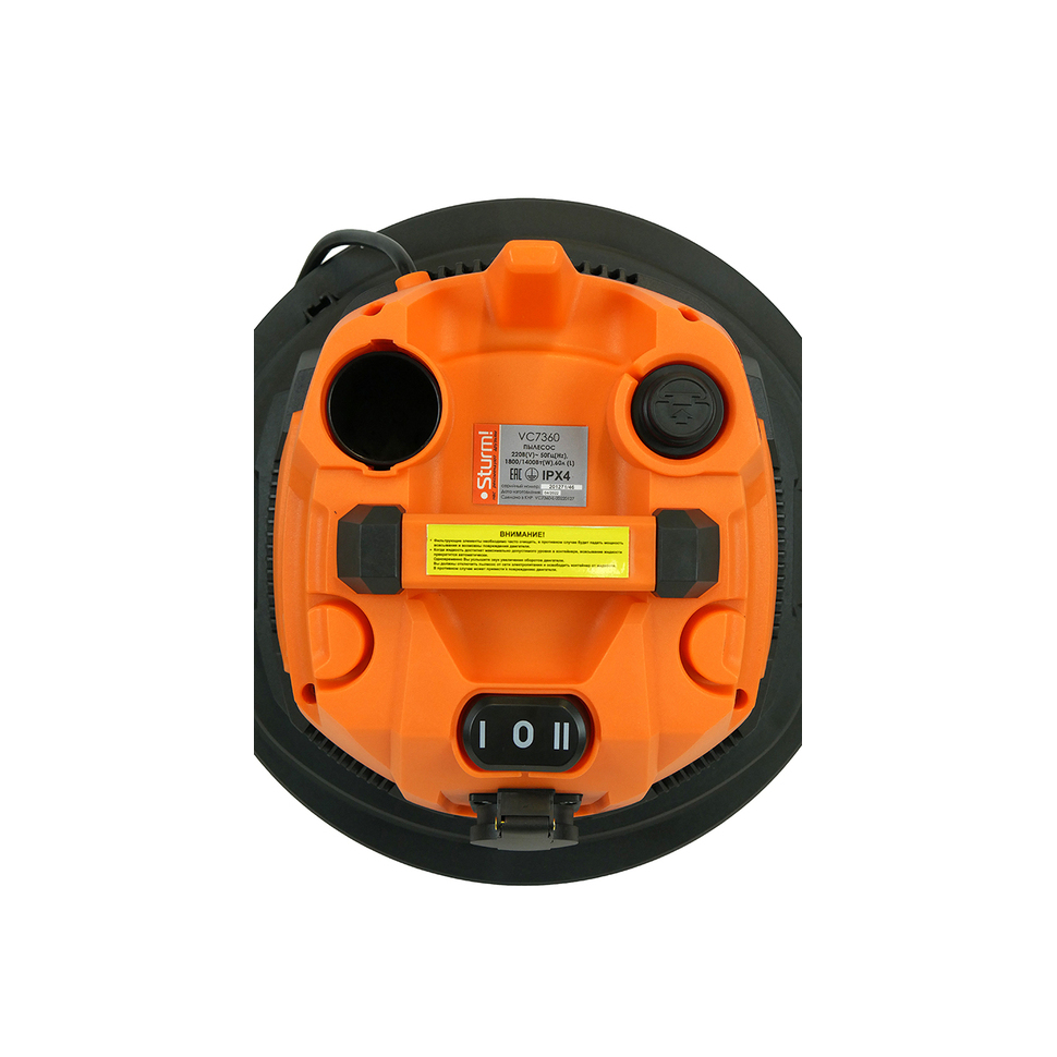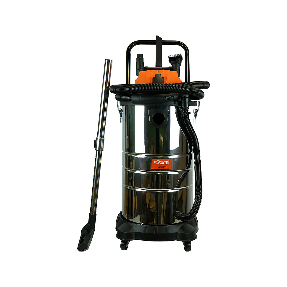 Строительный пылесос Штурм VC7360 демонстрирует универсальность, поддерживая сухую и влажную уборку.