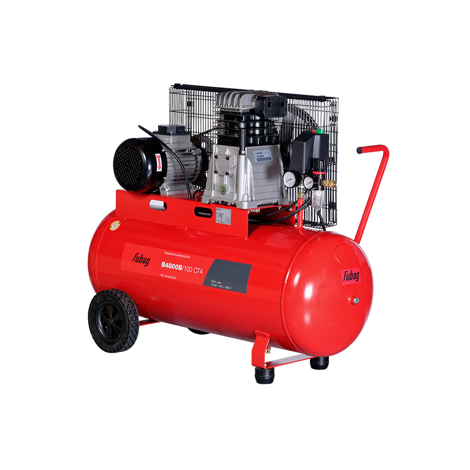 Ременной компрессор Fubag B4800B/100 CT4 - промышленный компрессор, который оснащен динамически сбалансированным маховиком со специальными лопастями, обеспечивающими снижение шума и эффективный теплоотвод.