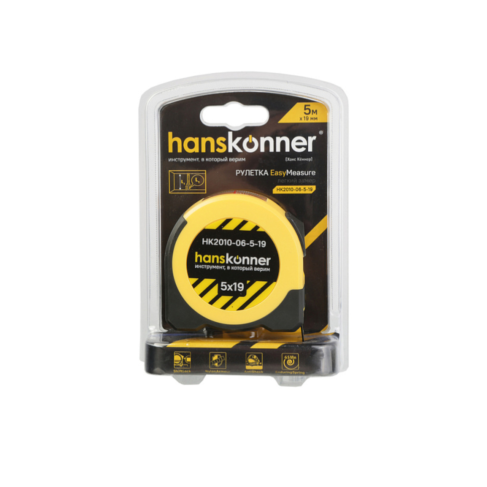 Характеристики Рулетка 5x19мм с окном для считывания внутренних размеров HANSKONNER (HK2010-06-5-19)