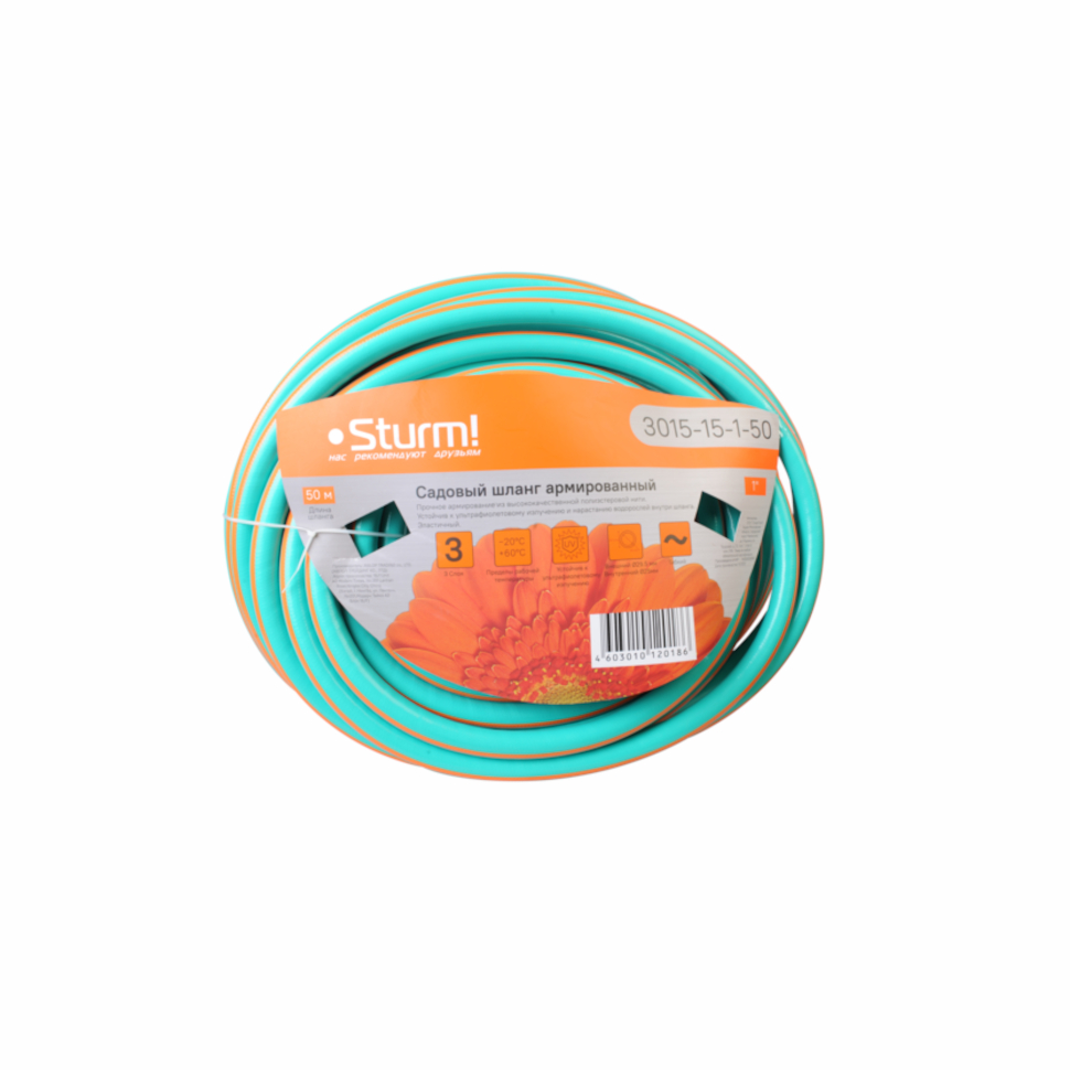 Преимущества Sturm (3015-15-1-50):Выбирайте надежный и эластичный шланг Штурм для бережной и эффективной эксплуатации вашего сада. Стильный оранжево-мятный цвет сделает его заметным на траве, исключая риск случайного повреждения газонокосилкой.