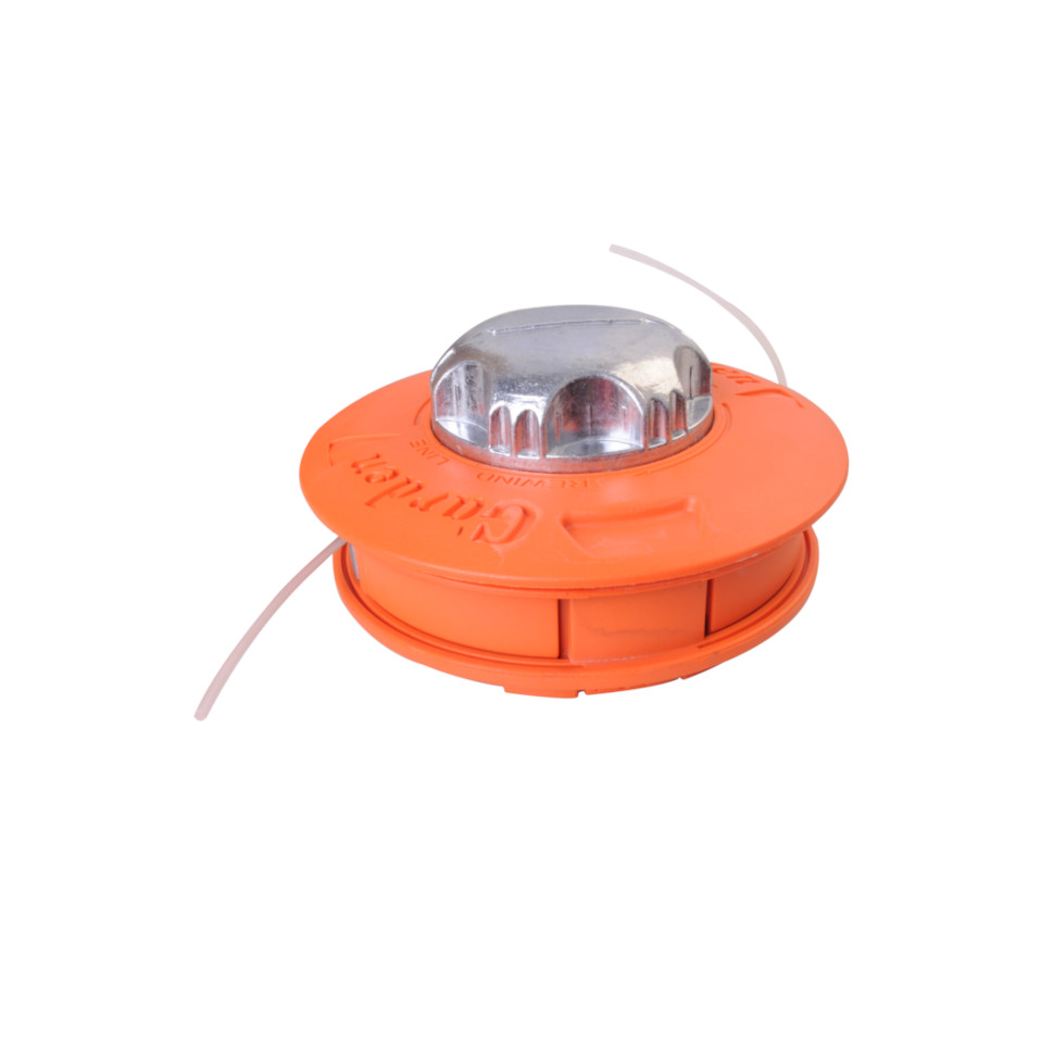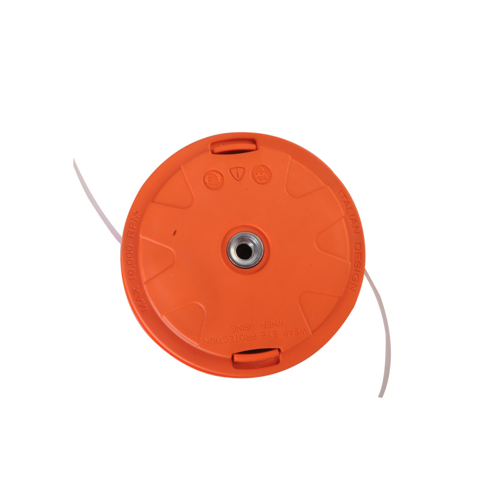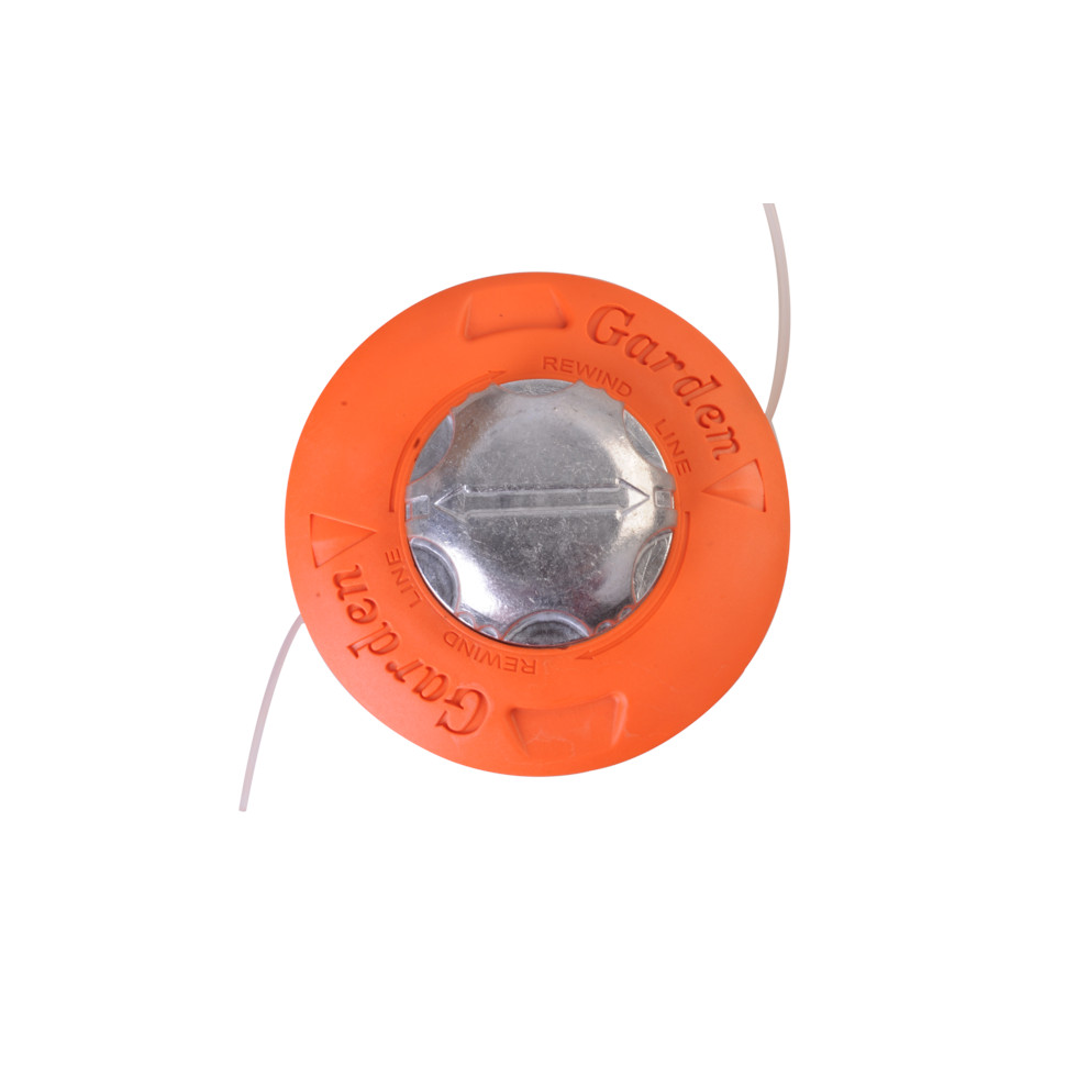 Головка для триммера имеет проушины из металла, благодаря чему износостойкость катушки значительно повышается.