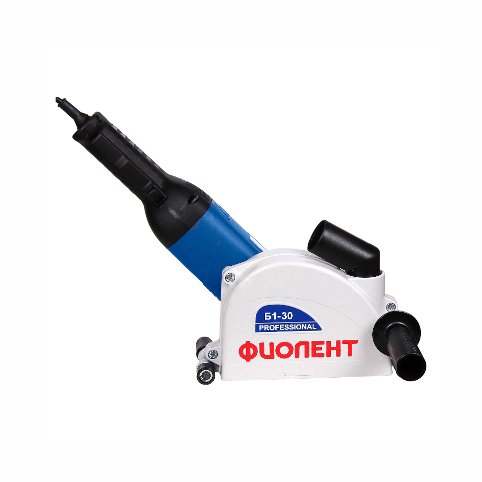 Штроборез Фиолент Б1-30. Дополнительная ручка. Защитный кожух. Гайка. Ключ. Руководство по эксплуатации. Коробка. |