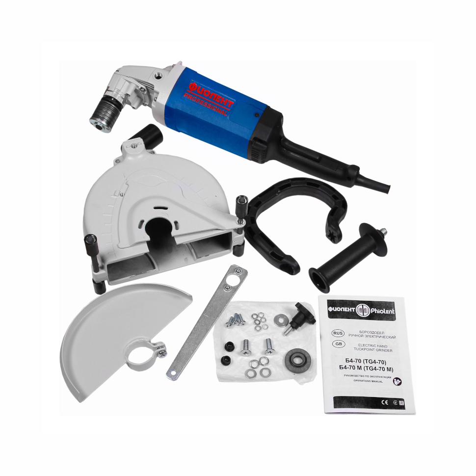 Штроборез Фиолент Б4-70. Дополнительная ручка. Защитный кожух. Гайка. Ключ. Руководство по эксплуатации. Коробка. |