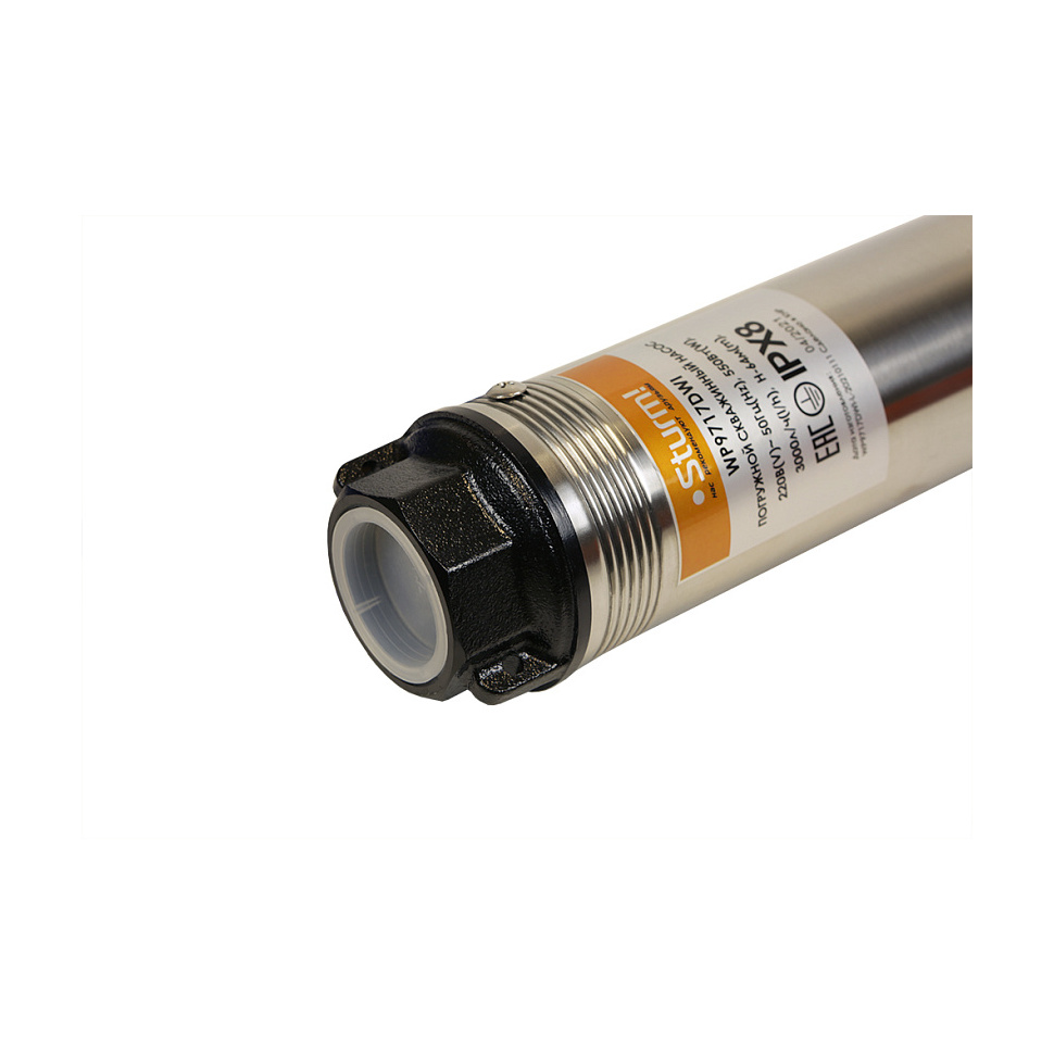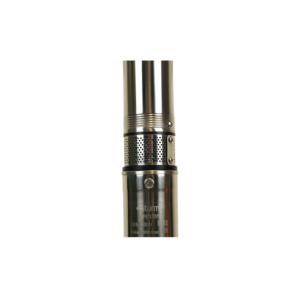 Корпус насоса Штурм выполнен из нержавеющей стали, благодаря чему он защищён как от внешней агрессивной среды, так и от механических повреждений.