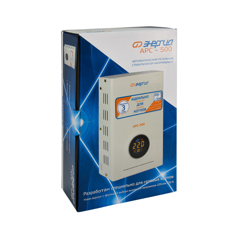 Стабилизатор ЭНЕРГИЯ АРС-500 для котлов +/-4% (Е0101-0131). Инструкция по эксплуатации. Коробка. |