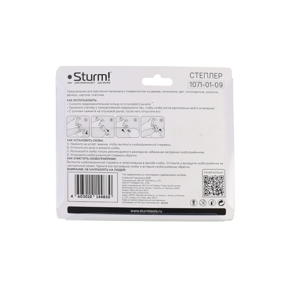 Характеристики Степлер механический Sturm 1071-01-09 (53 тип, 4-14 мм)