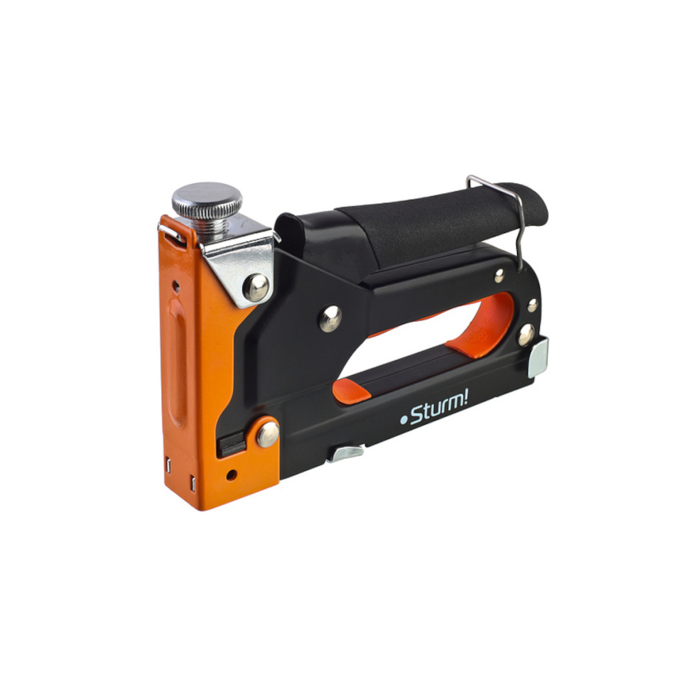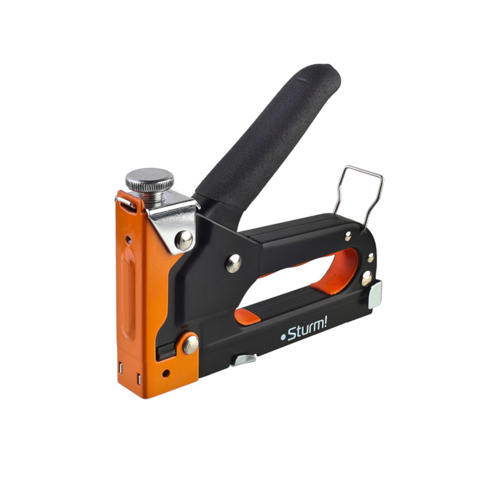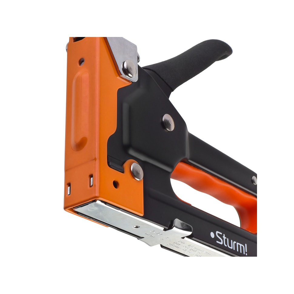 Мебельный степлер Sturm демонстрирует надежность благодаря усиленной конструкции и высококачественной пружине.