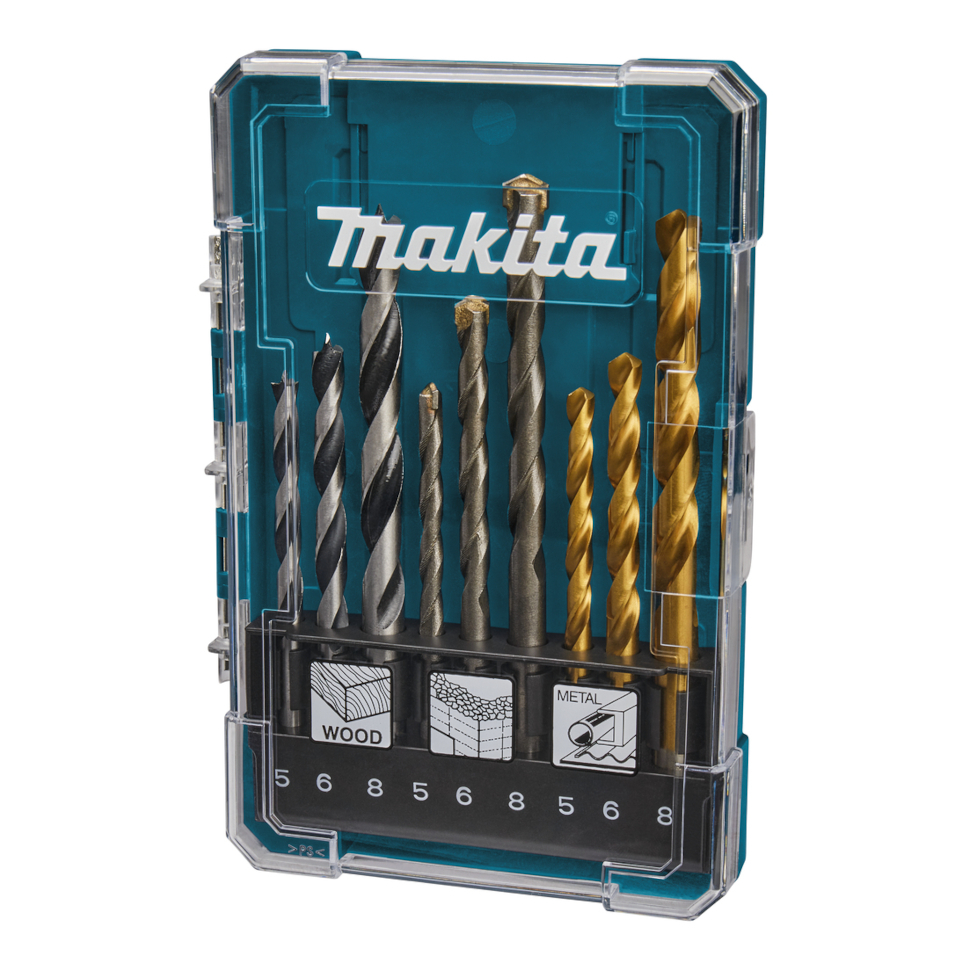 Характеристики Набор сверл 9 шт (дерево-5,6,8; металл-5,6,8; бетон-5,6,8 мм) Makita (D-71962)