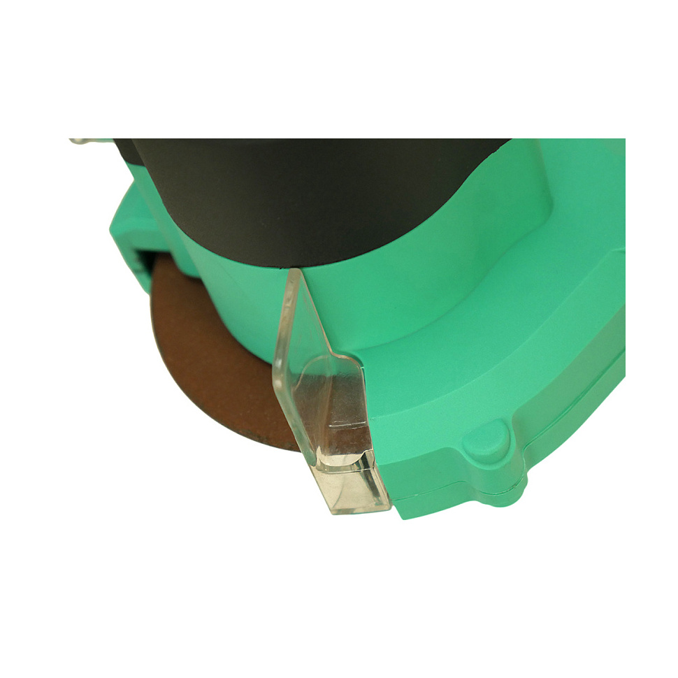 - Прозрачный полимерный экран надежно защищает оператора от летящих абразивных частиц и искр, не затрудняя визуальный контроль рабочего процесса.