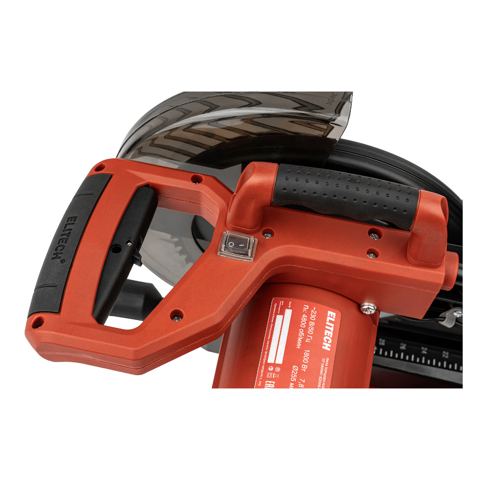 4. Для удобства работы торцовочная пила Элитеч имеет эргономичную рукоятку, удобное управление, а также возможность прикрепить её к верстаку.