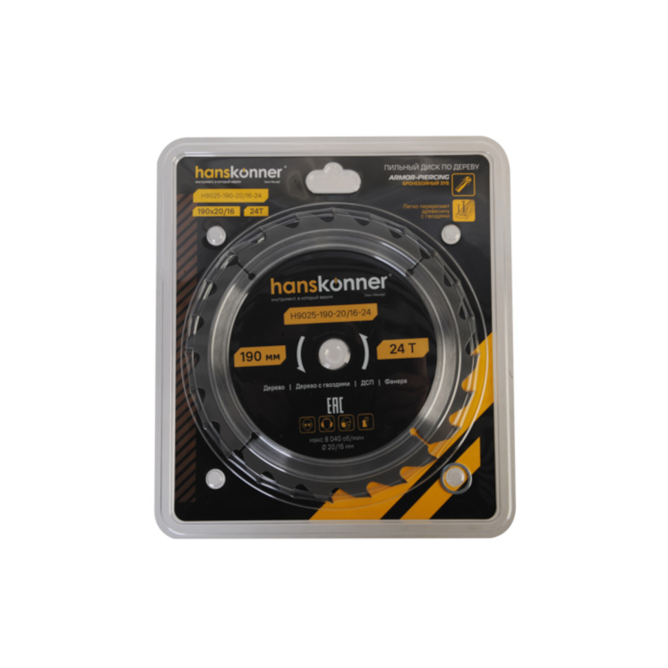 Пильный диск Хансконнер относится к серии ArmorPiercing - это значит, что он изготовлен из твёрдосплава первичного сырья, благодаря чему он способен легко перерезать даже древесину с гвоздями.
