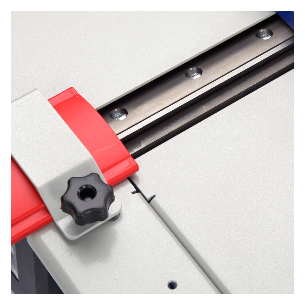 2. Точность работы - в комплекте линейка-упор с измерительными шкалами на направляющих, позволяющая выполнять точные продольные пропилы и устанавливать полнопрофильную линейку для поперечной резки.