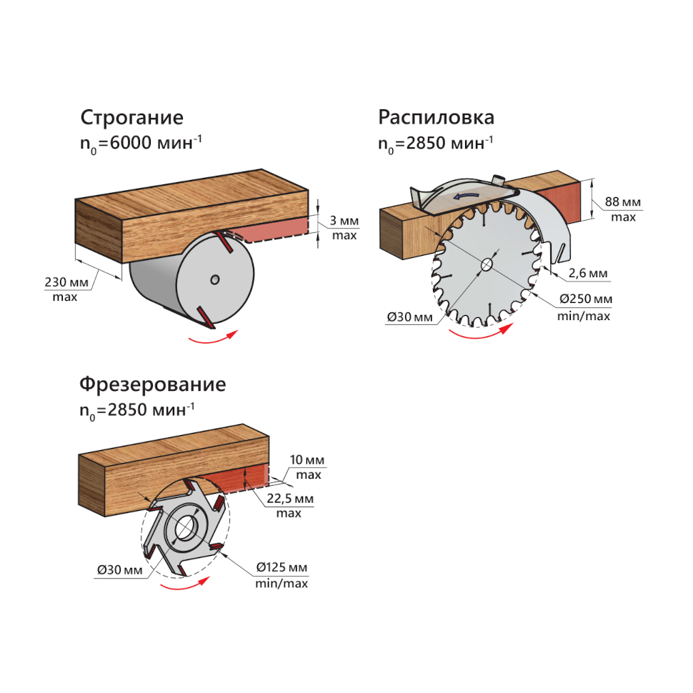 Максимальная глубина строгания 3 мм